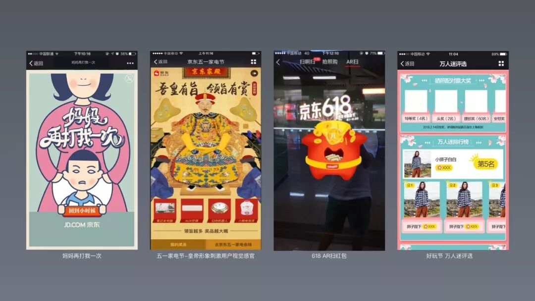 使用一些创新的交互方式也可以很好的满足用户的娱乐动机,比如手势、手机陀螺仪、加速器、调用相机/话筒、AR&VR等;